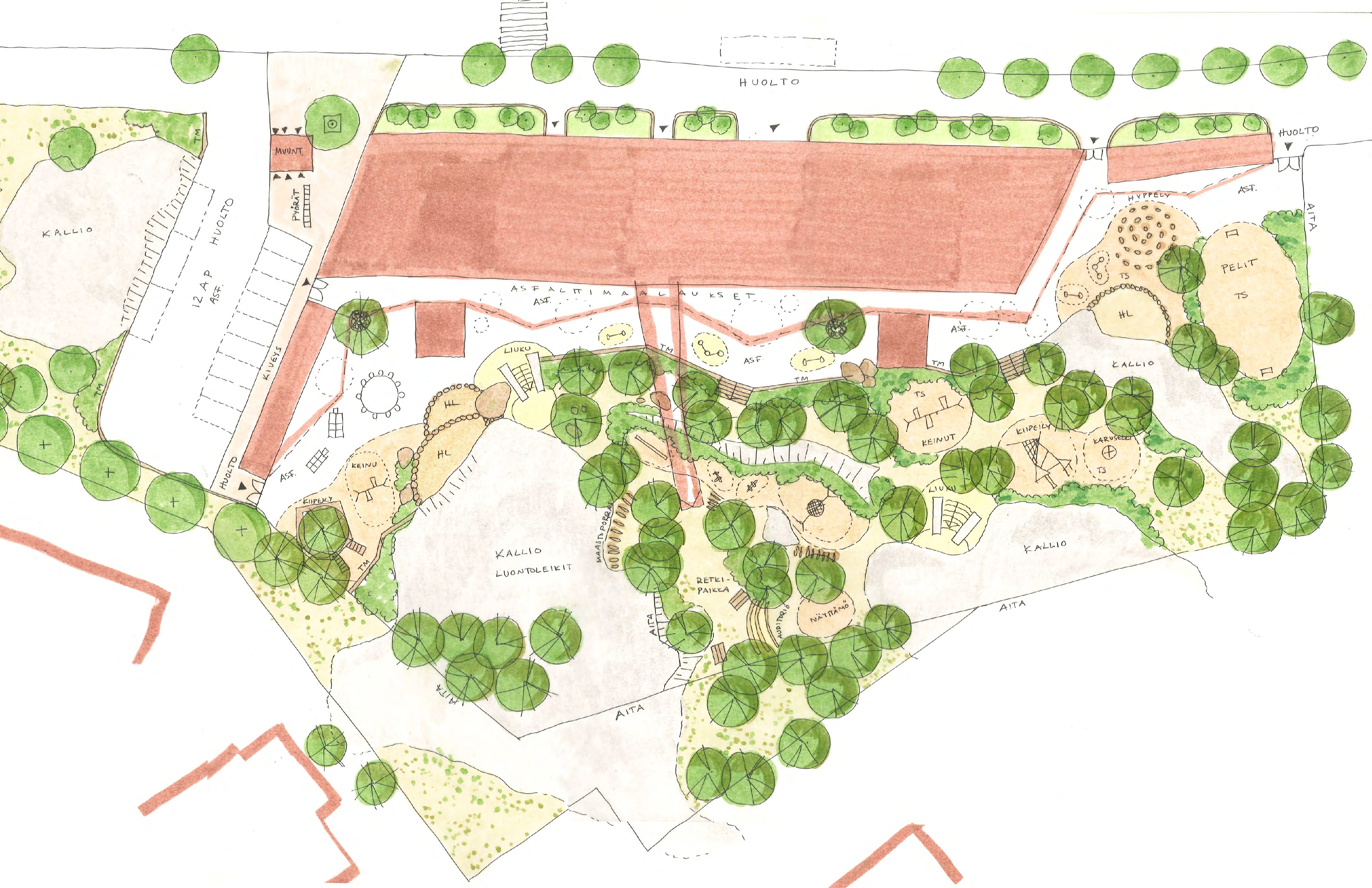 Miten yhdistetään luontoympäristö ja korkean kulutusasteen toiminnallinen päiväkodin piha? Vuonna 2020 valmistuneen Päiväkoti Lauttasaaren pihan suunnittelijat kertovat haastavan pihasuunnittelun vaiheista ja ratkaisuista.